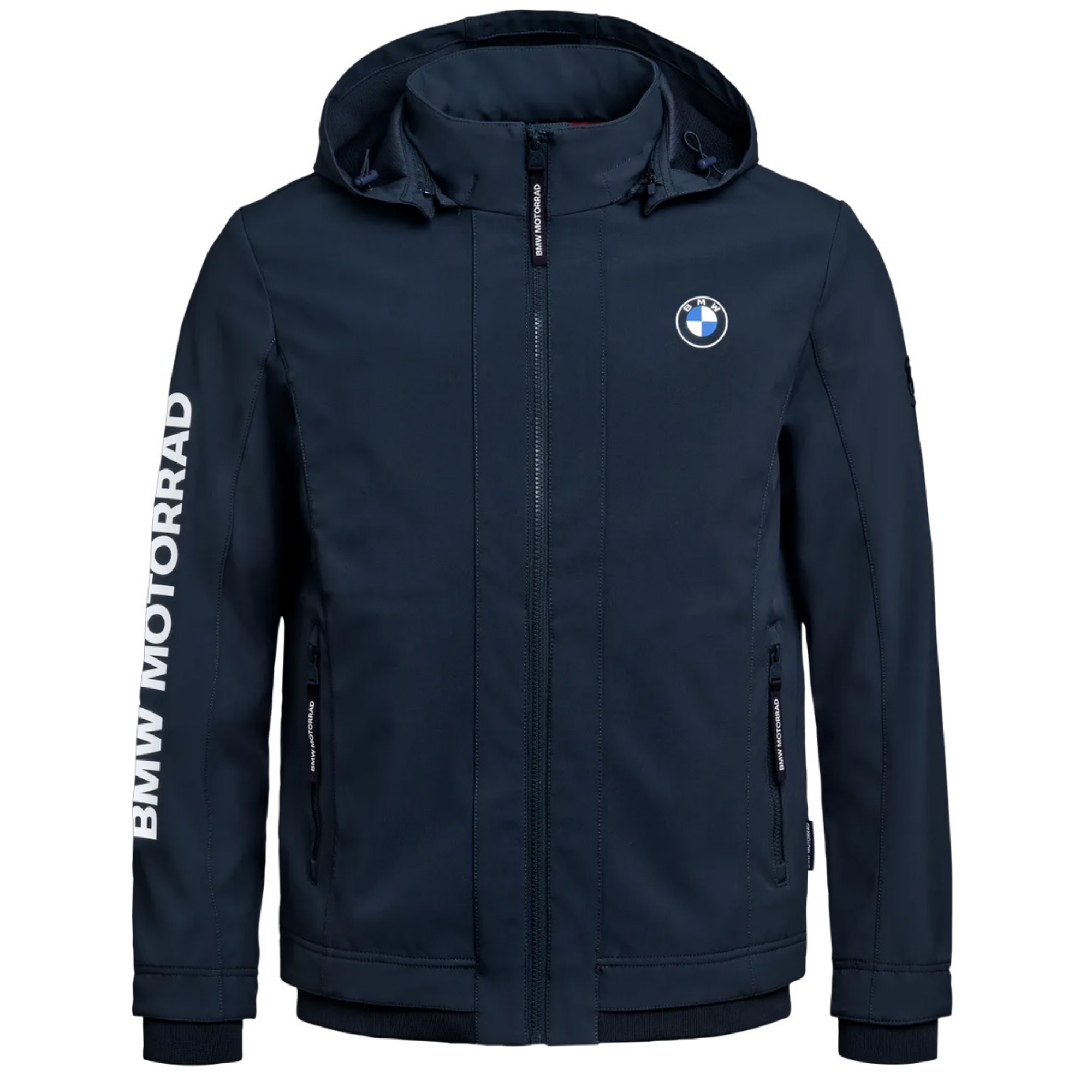 Weather protection has never looked so stylish. This windproof and waterproof softshell jacket offers a sleek design and a comfortable fit, making it ideal for wearing on its own or under a motorcycle suit. The three-layer navy blue softshell material is breathable and provides reliable protection against wind and rain, with a water column rating of 5,000 mm. Distinctive BMW Motorrad design accents complete the look.